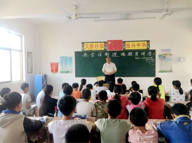 为贯彻落实十九大依法治国精神,更好地推进"法制文化示范学校"创建工作,进一步弘扬社会主义核心价值观,考城镇东马庄小学于2018年5月31日举办了安全普法进校园及感恩教育宣传讲座。