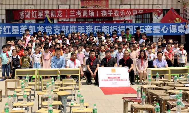 兰考红星美凯龙为考城镇大胡庄小学捐赠课桌凳
