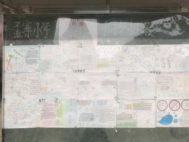 孟寨小学十分重视对学生的防溺水教育工作,连日来学校多措并举,通过开展预防溺水安全知识讲座、签订预防溺水承诺书、出防溺水安全为主题的手抄报、在醒目处悬挂“珍爱生命,防范溺水”为主题的安全警示横幅、开展班会等举措,切实做好防溺水安全教育,确保将防溺水工作落到了实处。