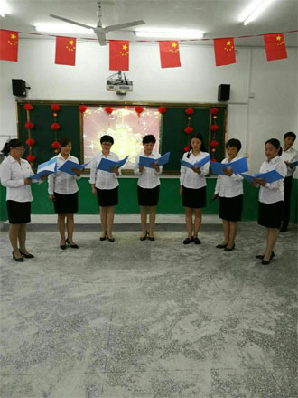 2017年9月29日,下午五点放学后,济阳全体教师齐聚一堂,喜迎国庆,共同祝愿我们伟大的祖国繁荣昌盛,欣欣向荣!看!我们的主持人王明明老师和雷卫丽老师闪亮登场!