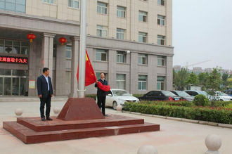 10月9日,国庆长假过后上班第一天,兰考县教体局举行升国旗仪式。教体局副局长雷国振主持了升国旗仪式。
