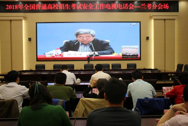 5月8日上午,兰考县组织收看2018年全国普通高校招生考试安全工作电视电话会议。县政府副县长肖广辉、县教体局班子成员、高考各联席单位分管负责人及各高中校长参加了会议。