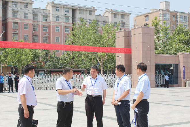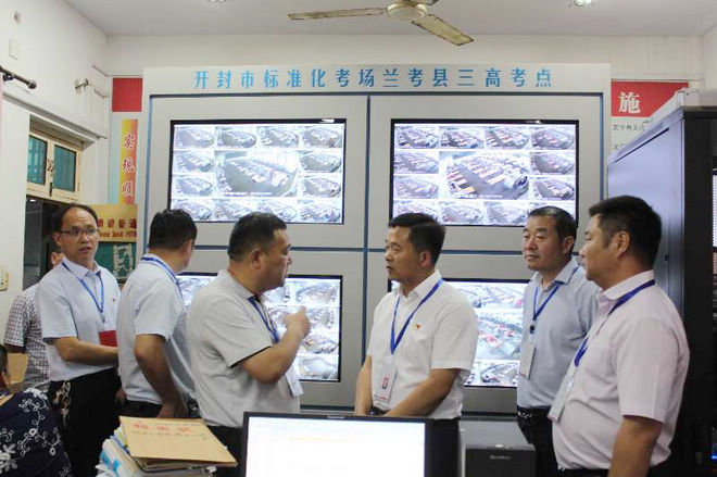 李明俊一行在兰考三高考点实地查看了视频监控室、考务办公室和考试指挥中心,听取了现场负责人有关考试准备情况以及后勤保障工作的汇报。